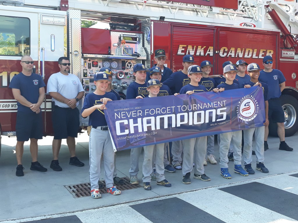 As a highlight and end to the weekend tournament, we had the three winning teams stop by the Enka fire station for photos in front of the fire truck with some of the firemen who graciously welcomed our players and their families.