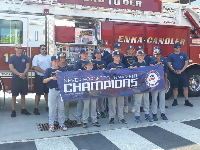 Last weekend, we hosted 22 teams at Bob Lewis Ballpark for the 9/11 Never Forget Tournament. Activities were paused at 8:46 on Sept. 11 for a remembrance of that tragic day. There were many tears in the eyes of our fans and spectators. In addition to local teams from Asheville, Brevard, Fletcher and Lenoir, we … Continue reading 9/11 All League Baseball Never Forget Tournament